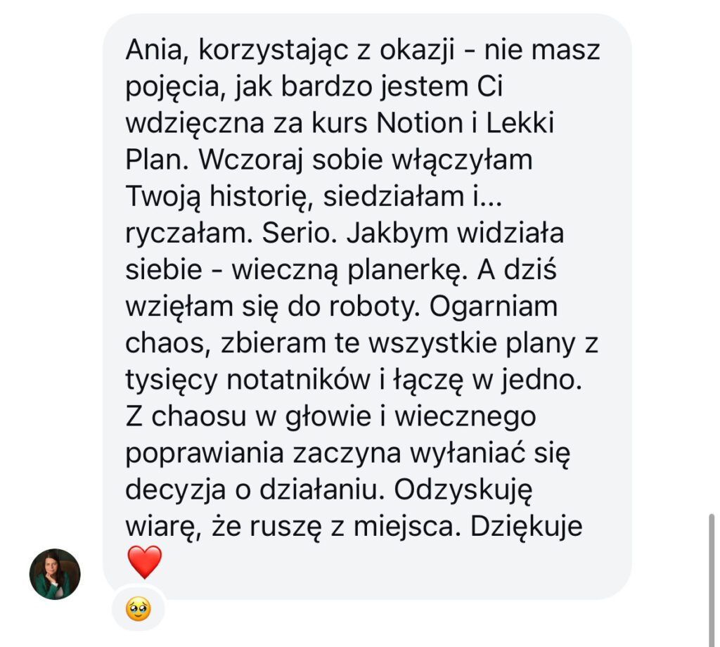 Jeśli chcesz nie tylko uporządkować swoje narzędzia, ale też działać skutecznie i spokojnie – dzień po dniu, możesz zdecydować się na pakiet, w którym oprócz kursu Notion dostajesz też - Lekki Plan