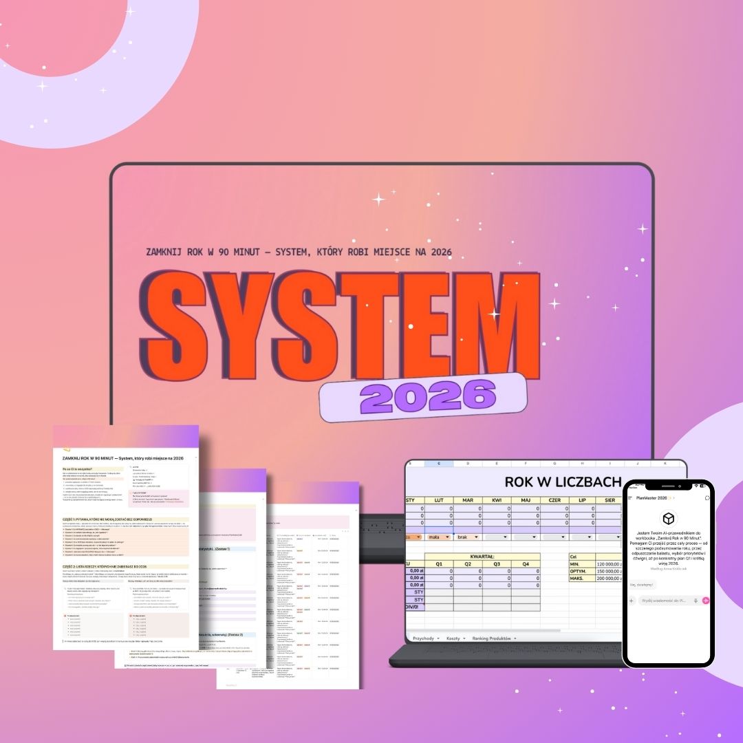 To nie jest motywacyjny workbook — to narzędzie decyzyjne dla kobiet, które chcą prowadzić biznes świadomie, a nie na adrenalinie. Jeśli chcesz spokoju w głowie, kontroli w liczbach i jasnego kierunku zamiast presji — System 2026 robi dokładnie to. 🛸