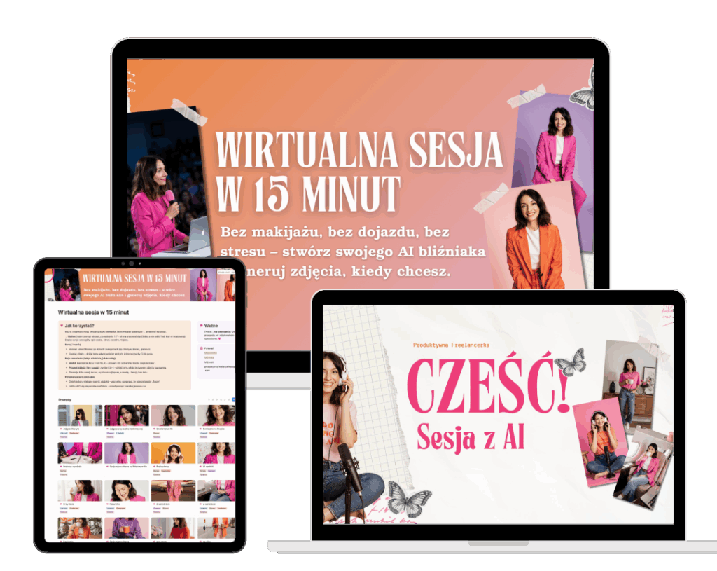 Z AI-bliźniaczką masz profesjonalne ujęcia od ręki – a gdy przyjdzie sesja, będziesz już mieć spójny i świeży wizerunek online.